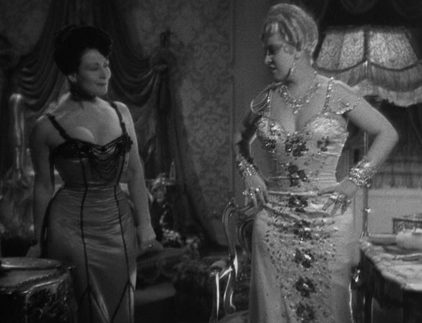 Tyler: I’d like to ask The Academy for a refund on the diamonds8 I bought it. This is a chaotically neutral, wild fever dream of a pre-Code movie that is somehow convoluted but also makes zero sense. As Ellen says above, it relies 100% on Mae West and her suggestively quippy appeal (for better or worse), and while I chuckled at some of her lines and snappy delivery, I just wasn’t charmed by her schtick. Maybe if I saw this at the time and was enthralled enough by the “showing” to balance out the “telling” it would’ve landed better for me, but much like the wine they probably serve at the saloon Lou performs at, it simply didn’t age well.